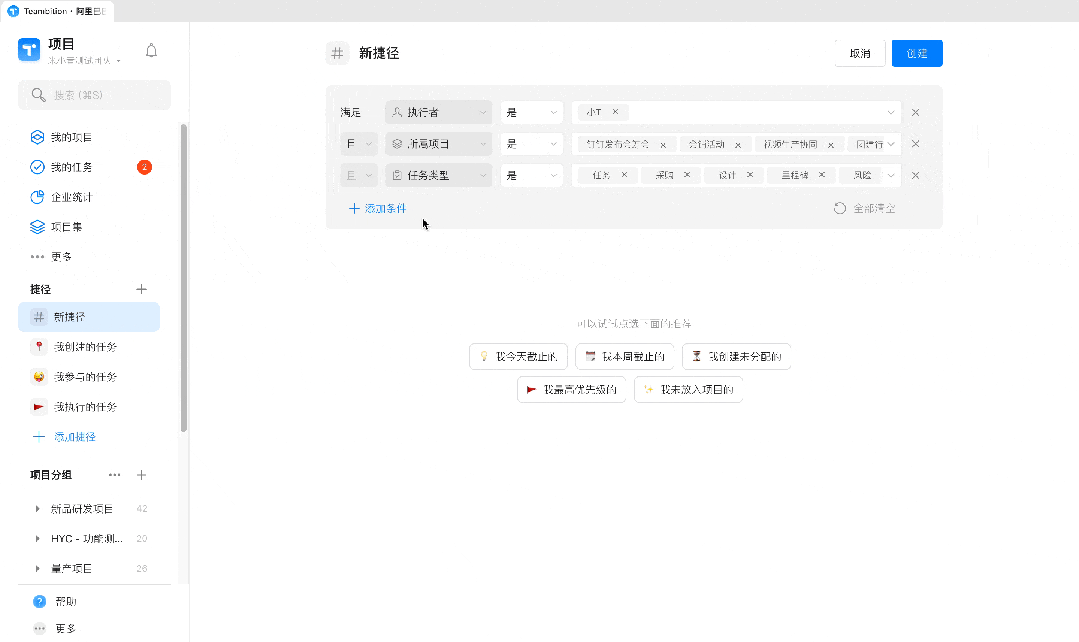 五、「捷径」中任务状态支持按任务类型筛选