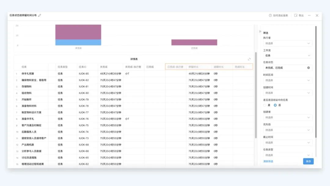 1、 项目统计「任务状态按停留时间分布」报表新增分析指标