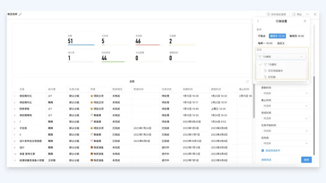 3.项目统计新增项目助手、钉钉群订阅渠道