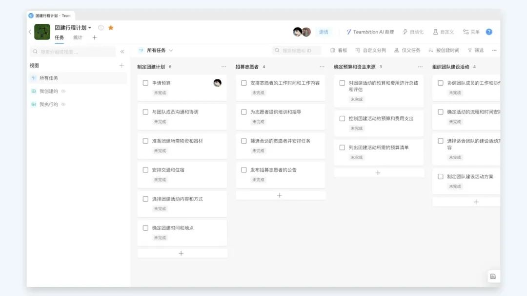 经历了紧张忙碌的工作阶段,是时候通过团队建设活动来放松心情!制定流程很烦?没关系交给 Teambition,模板预先设置了活动流程和任务分工,无需从零开始规划,即可让每个成员都乐在其中!