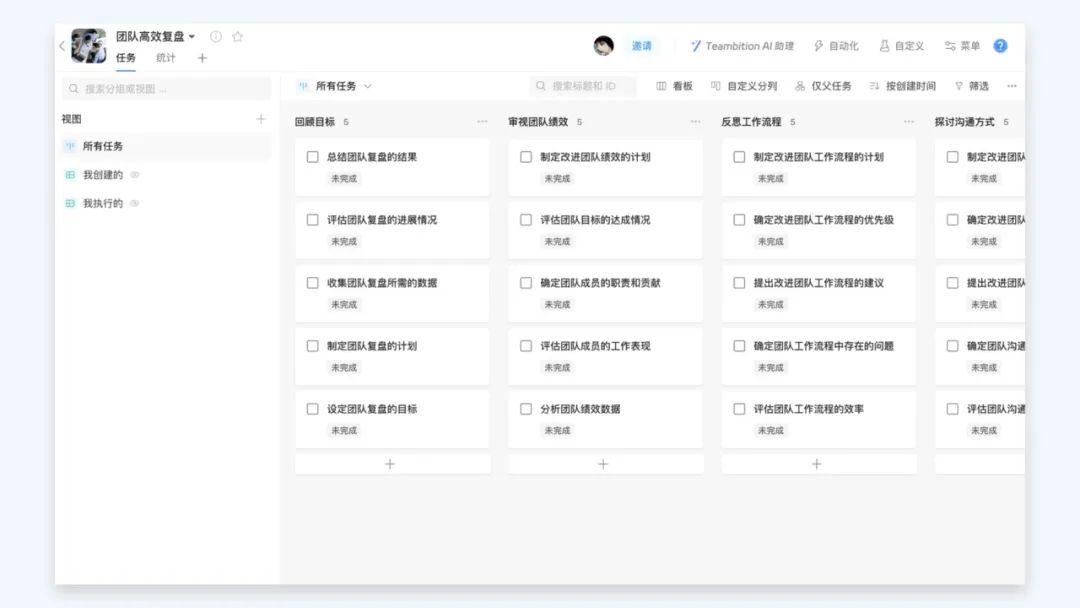 提供了一套系统化的回顾与总结的复盘模板,团队可以按照清晰的步骤回顾任务执行过程,深度分析成功经验与不足之处,让成员共同成长。