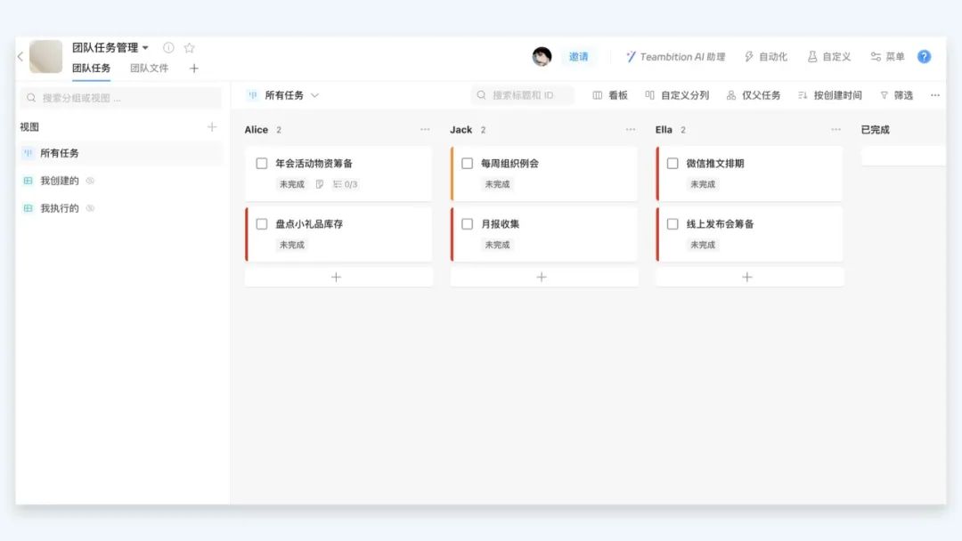 帮助成员有序规划各项任务,避免任务散乱、遗漏和延误,帮助管理者了解每一个成员的工作内容及执行进度,让工作井井有条。