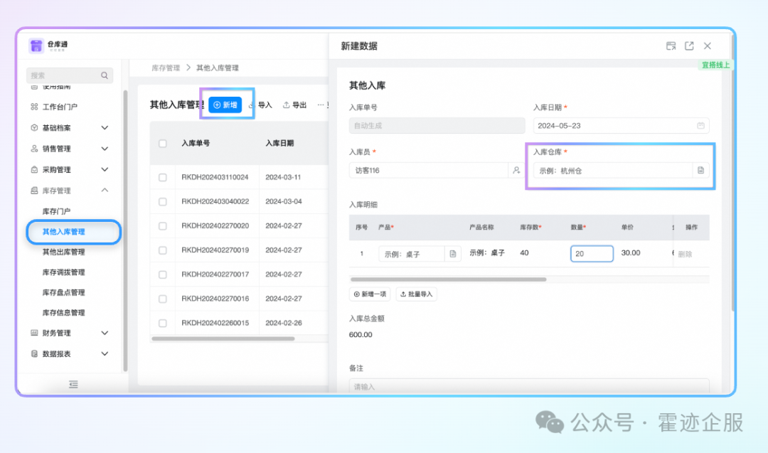 【价值】用于记录和管理除采购入库之外的各种入库活动,确保了库存数据的完整性与准确性,提升了库存运营的效率和透明度,为企业决策提供了坚实的数据基础。