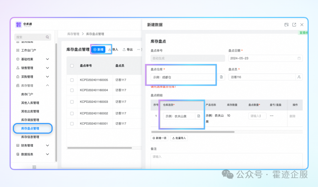 【功能】提交实物盘点与系统记录对比,校正库存数量、位置等信息,确保系统数据与实际库存一致。