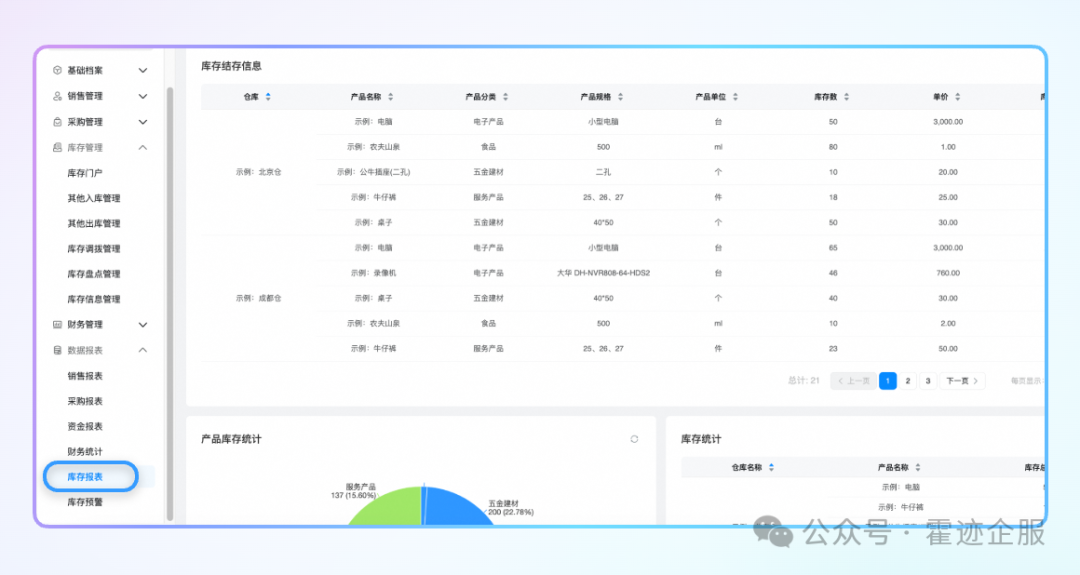 【功能】实时展示当前库存信息,包括各种商品数量、金额及其分布情况。