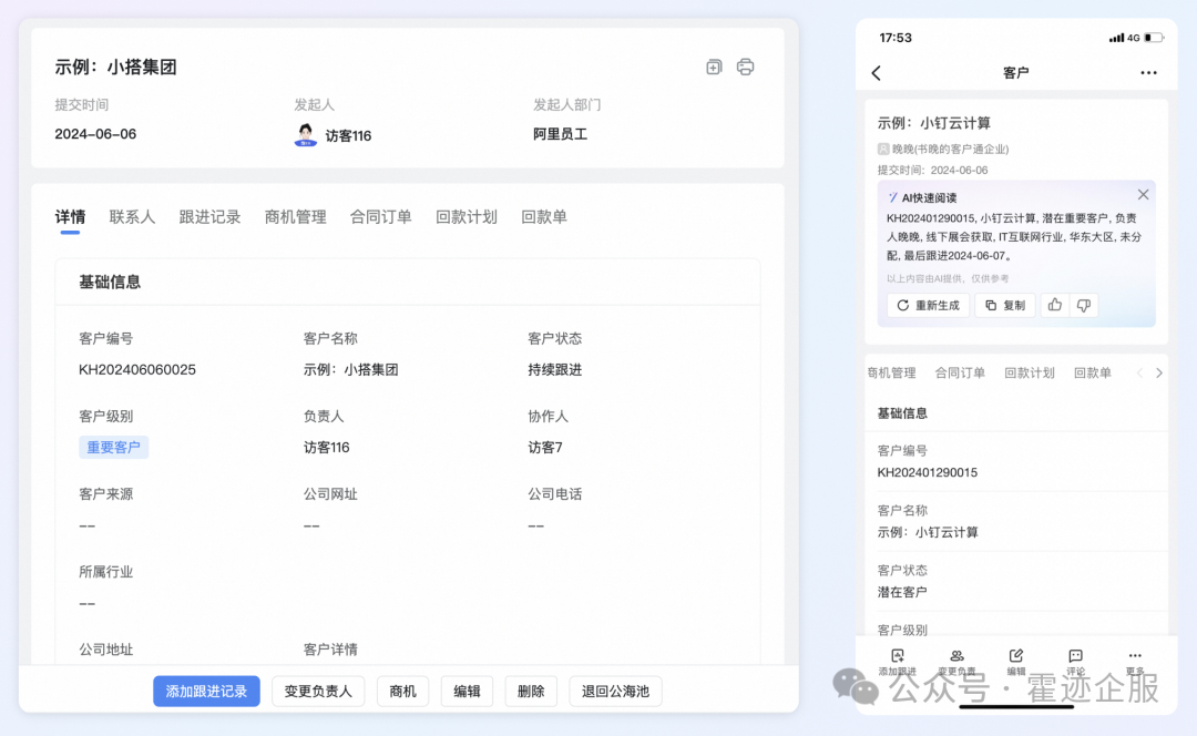 客户信息透明管理|客户跟进、商机、订单、回款全知晓