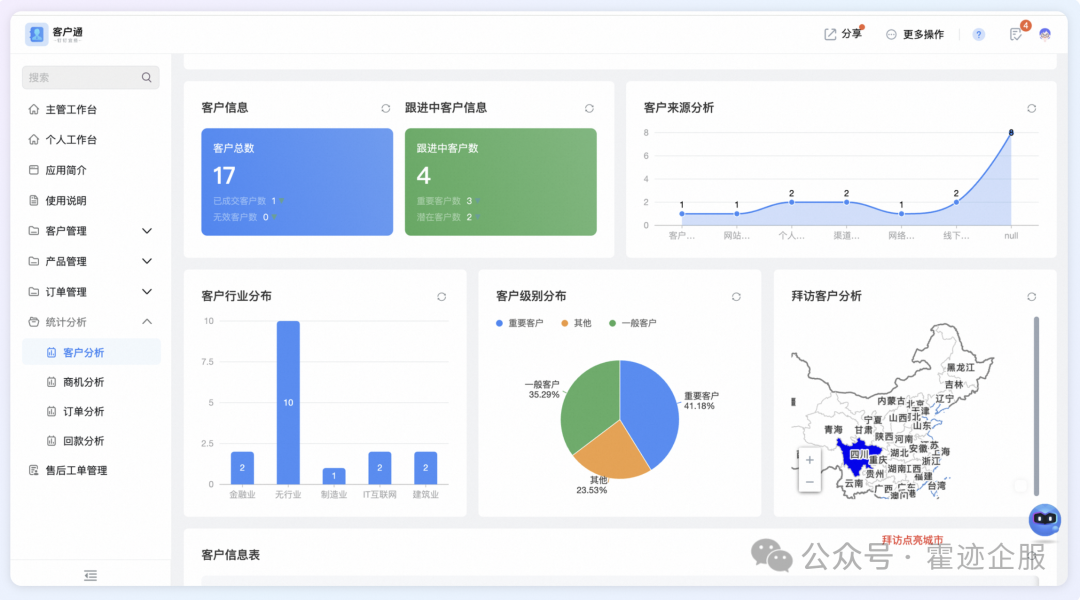 「客户通」是一款强大的工具,它通过深度整合客户跟进及拜访记录,细致描绘客户轮廓,透析客户获取渠道与行业动态,为管理层精准锚定数据导向,助力制定客户导向策略、优化资源配置及推动产品创新,进而实现客户关系管理的精密化与科学升级,为企业战略决策注入智慧动能。