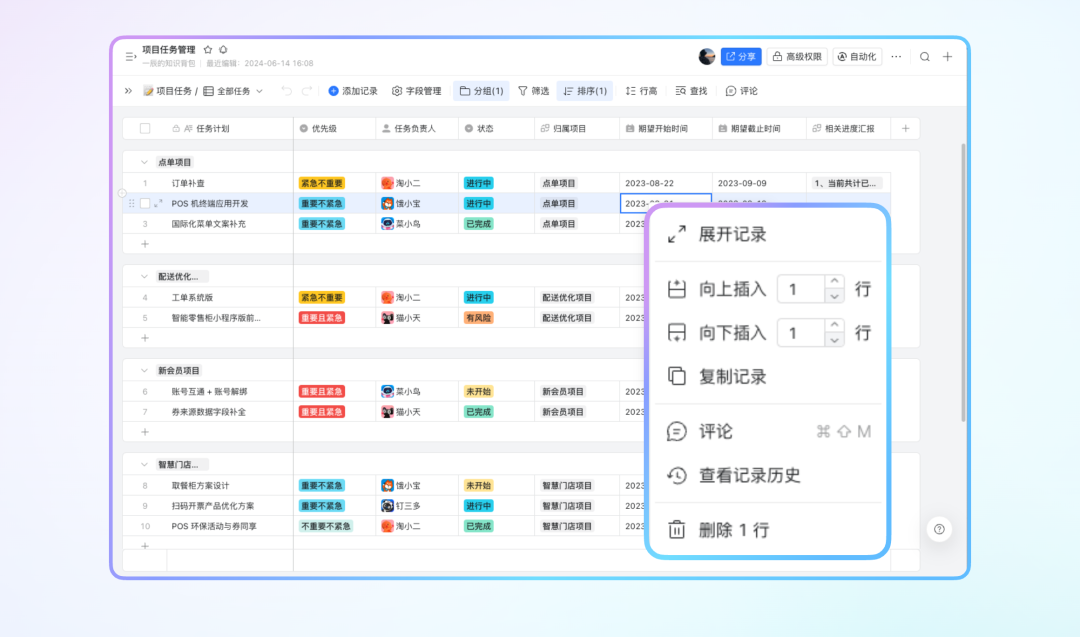 多维表现支持批量插入多行,无需逐一添加,即可轻松完成大量数据导入,高效节省时间精力,数据处理快捷流畅。